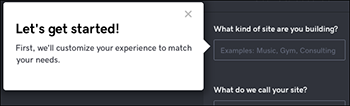 - The first time you launch your site, a Let's get started! window asks you to enter a word or two that describe the type of site (or store) you're creating.