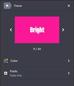 - Scroll through the left-hand layouts grid (desktop) or swipe through predefined color-font combinations (mobile).